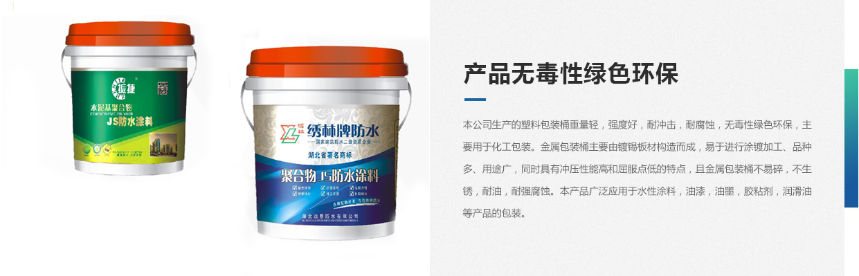 本公司生產的塑料包裝桶重量輕,強度好,耐沖擊,耐腐蝕,無毒性綠色環(huán)保,主要用于化工包裝。金屬包裝桶主要由鍍錫板材構造而成,易于進行涂鍍加工、品種多、用途廣,同時具有沖壓性能高和屈服點低的特點,且金屬包裝桶不易碎,不生銹,耐油,耐強腐蝕。本產品廣泛應用于水性涂料,油漆,油墨,膠粘劑,潤滑油等產品的包裝。